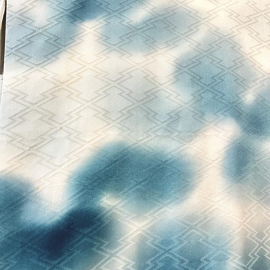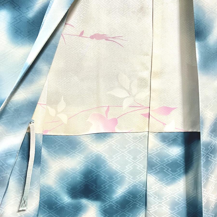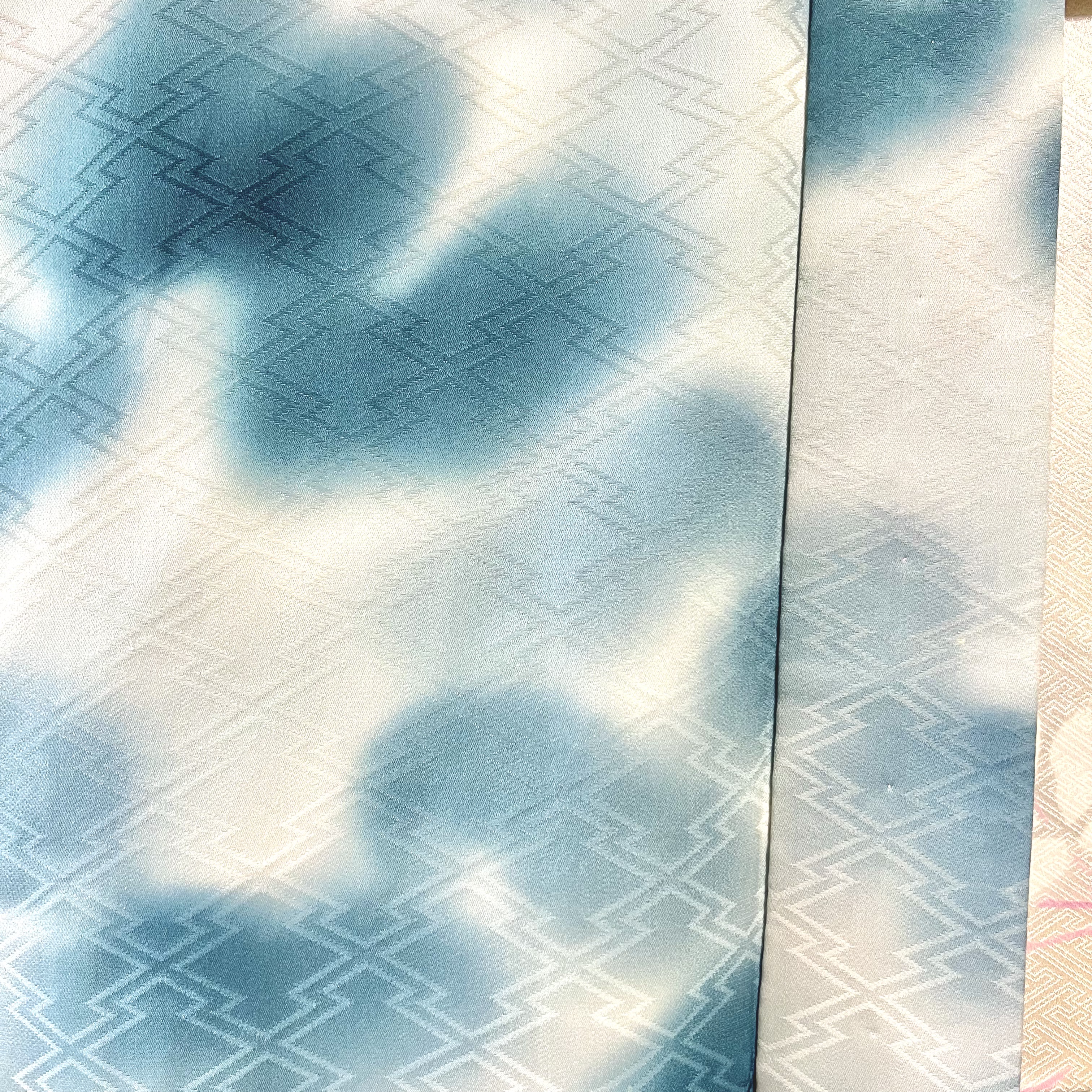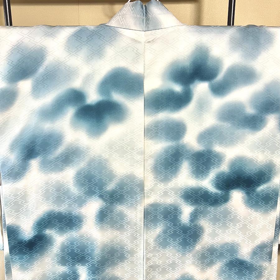 Vintage Haori (Japanese coat) Blue with Gradient and Pine Bark Diamond Pattern