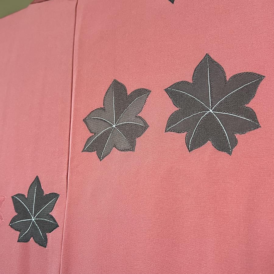 これはヴィンテージの羽織です。こちらは型染めの技法で柄が描かれています。デニムやスカートと合わせてドレスアップも楽しみやすく人気な商品です。