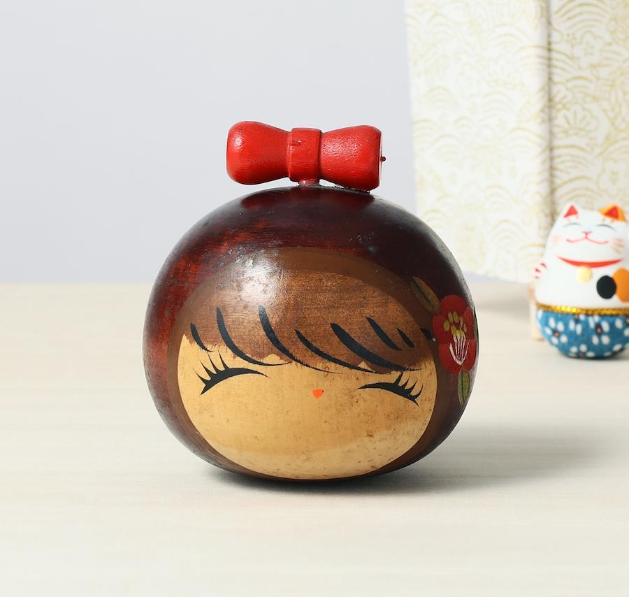 ★素材:木★コンディション:経年によりしみ、変色があります。写真をご覧ください)★サイズ(約):・高さ 8cm / 3.14inch・直径 幅 7cm / 2.75inch・重さ 121.0g※パソコンやスマートフォンなど、ご覧になられる環境により商品写真の色と実際の色が異なる場合があります。どうぞご了承ください。★お取り扱いについて★※こけしの顔や模様は水性染料で描かれているため、たいへん水に弱いです。色落ちを避けるためにも、お掃除の際は乾いた布で拭いてあげてください。※こけし本体は木でできています。急な乾燥や直射日光、エアコンなどの暖房器具の近くを避けてお楽しみください。また、あまり湿気の多い場所ですとカビが生えることがありますのでご注意ください。