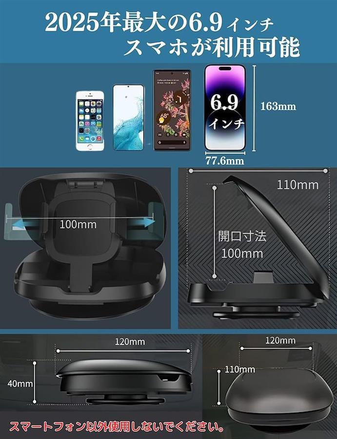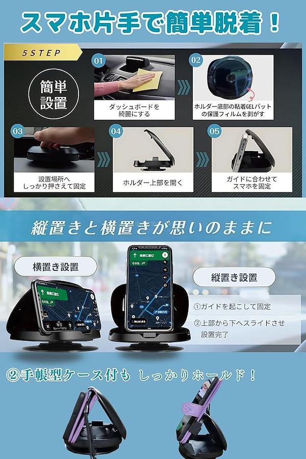 「安定した固定力」ダッシュボードにしっかりと固定できる設計で、走行中の振動や急ブレーキにも対応。