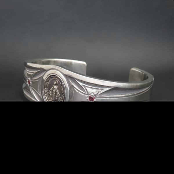 【モチーフ】 聖母マリア、マリア、十字架、クロス、唐草模様、アラベスク ◆モチーフ意味 聖母マリアのメダイは持つ人に奇跡の恵みがもたらされると言われています。 十字架といえばイエス・キリスト。 イエス・キリストは、人類を罪から救うため、十字架に磔刑に処されたといわれています。 そのため、十字架はキリスト教における救いのシンボルであり、特別な意味を持つ尊重されるべきしるしでもあるのです。 このような背景があるため、クロスは愛、救い、永遠、解放、生命力、復活など、多様な意味を持ちます。 また、クロスには守護の要素が強く、魔除けの効果があり、天からの加護や災いを跳ね返してくれる力が高まるともいわれています。 唐草模様は葉や茎、植物が伸びたり絡んだりした植物の模様でツタは生命力が強く、途切れる事なく伸びていく事から「繁栄・長寿」の意味があります。 生命力、永遠に力強く伸びつづけるという、縁起の良いイメージとされてきました。 ◆商品名 聖母マリアクロスバングル(BNG-5) ◆素材 シルバー925 スターリングシルバー × 真鍮 ( ブラス ) ◆バングル幅 最大23.5mm、最小12.5mm ◆ストーン 直径3.0mm 下記の中からお好みの天然石・誕生石をお付け致します。 ・ガーネット ・ロードライトガーネット ・アメジスト ・アクアマリン ・ブルームーンストーン ・ルビー ・ペリドット ・サファイア ・アイオライト ・ピンクトルマリン ・シトリン ・ブルートパーズ ・タンザナイト ・オニキス ・ターコイズ ・ラピスラズリ ◆付属品 ジュエリーBOX、ショップ袋、品質保証書 *プレゼント梱包出来ます ◆実店舗 JR帯広駅より徒歩5分の場所にある2012年オープンのフラッグシップショップ。 ジュエリー工房を併設し、常駐する職人自らと打ち合わせも可能なため、修理や加工、お客様のご希望に沿ったジュエリーもお作りすることが可能です。 ◆オススメ使用シーン ・様々な贈り物に プレゼント 贈り物 誕生日 誕プレ 誕生日プレゼント バースデー バースデイ 御祝 御祝い お祝い 母の日 父の日 クリスマス クリスマスプレゼント Xmas 春夏秋冬 春 成人 成人式 卒業 卒業式 進学 就職 入学 金婚式 銀婚式 出産 結婚 開店 開業 定年退職 退職 移動 転勤 バレンタイン バレンタインデー バレンタインデイホワイトデー ホワイトデイ ごほうび ご褒美 御褒美 ・想いを込めて ありがとう 感謝 ごめんなさい 許して ごめんね よろしく おめでとう おめでとうございます 仲直り ・こんな方に 自分 彼女 彼氏 大切な人 大切な方 お父さん お父様 父親 親父 父 お母さん お母様 母親 母 兄弟 姉妹 子供 おばあちゃん 祖母 おじいちゃん 祖父 奥さん 妻 旦那 旦那さん 先生 生徒 職場 先輩 後輩 上司 部下 同僚 友達 友人