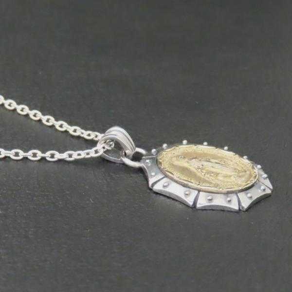 【モチーフ】 聖母マリア、マリア ◆モチーフ意味 聖母マリアのメダイは持つ人に奇跡の恵みがもたらされると言われています。 ◆商品名 聖母マリアネックレス(PDT-386) ◆素材 シルバー925 スターリングシルバー × 真鍮 ブラス ◆ペンダント寸法 縦27mm×横17mm ◆チェーン長さ 35~60cmの中からお好みの長さをお選び下さい。 1.8mmシルバー925小豆チェーン ◆付属品 ジュエリーBOX、ショップ袋、品質保証書 *プレゼント梱包出来ます ◆実店舗 Grand Galleria(グランドガレリア) JR帯広駅より徒歩5分の場所にある2012年オープンのフラッグシップショップ。 ジュエリー工房を併設し、常駐する職人自らと打ち合わせも可能なため、修理や加工、お客様のご希望に沿ったジュエリーもお作りすることが可能です。 ◆オススメ使用シーン ・様々な贈り物に プレゼント 贈り物 誕生日 誕プレ 誕生日プレゼント バースデー バースデイ 御祝 御祝い お祝い 母の日 父の日 クリスマス クリスマスプレゼント Xmas 春夏秋冬 成人 成人式 卒業 卒業式 進学 就職 入学 金婚式 銀婚式 出産 結婚 開店 開業 定年退職 退職 移動 転勤 バレンタイン バレンタインデー バレンタインデイホワイトデー ホワイトデイ ごほうび ご褒美 御褒美 ・想いを込めて ありがとう 感謝 ごめんなさい 許して ごめんね よろしく おめでとう おめでとうございます 仲直り ・こんな方に 自分 彼女 彼氏 大切な人 大切な方 お父さん お父様 父親 親父 父 お母さん お母様 母親 母 兄弟 姉妹 子供 おばあちゃん 祖母 おじいちゃん 祖父 奥さん 妻 旦那 旦那さん 先生 生徒 職場 先輩 後輩 上司 部下 同僚 友達 友人