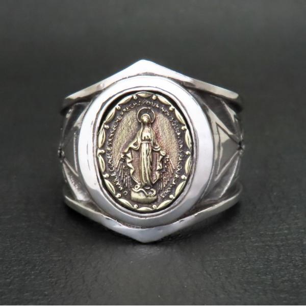 【モチーフ】 聖母マリア、マリア、クロス、十字架 ◆モチーフ意味 聖母マリアのメダイは持つ人に奇跡の恵みがもたらされると言われています。 十字架といえばイエス・キリスト。 イエス・キリストは、人類を罪から救うため、十字架に磔刑に処されたといわれています。 そのため、十字架はキリスト教における救いのシンボルであり、特別な意味を持つ尊重されるべきしるしでもあるのです。 このような背景があるため、クロスは愛、救い、永遠、解放、生命力、復活など、多様な意味を持ちます。 また、クロスには守護の要素が強く、魔除けの効果があり、天からの加護や災いを跳ね返してくれる力が高まるともいわれています。 ◆商品名 聖母マリアリング(RNG-62) ◆素材 シルバー925 スターリングシルバー × 真鍮 ブラス ◆リング幅 最大23mm、最小9mm ◆ストーン 直径2.0mm 下記の中からお好みの天然石・誕生石をお付け致します。 ・ガーネット ・ロードライトガーネット ・アメジスト ・アクアマリン ・ブラックダイヤモンド ・エメラルド ・ブルームーンストーン ・ルビー ・ペリドット ・サファイア ・アイオライト ・ピンクトルマリン ・シトリン ・ブルートパーズ ・タンザナイト ・オニキス ・ラピスラズリ ・ターコイズ ◆リングサイズ 15号~30号 ◆付属品 ジュエリーBOX、ショップ袋、品質保証書 *プレゼント梱包出来ます ◆実店舗 Grand Galleria(グランドガレリア) JR帯広駅より徒歩5分の場所にある2012年オープンのフラッグシップショップ。 ジュエリー工房を併設し、常駐する職人自らと打ち合わせも可能なため、修理や加工、お客様のご希望に沿ったジュエリーもお作りすることが可能です。 ◆オススメ使用シーン ・様々な贈り物に プレゼント 贈り物 誕生日 誕プレ 誕生日プレゼント バースデー バースデイ 御祝 御祝い お祝い 母の日 父の日 クリスマス クリスマスプレゼント Xmas 春夏秋冬 成人 成人式 卒業 卒業式 進学 就職 入学 金婚式 銀婚式 出産 結婚 開店 開業 定年退職 退職 移動 転勤 バレンタイン バレンタインデー バレンタインデイホワイトデー ホワイトデイ ごほうび ご褒美 御褒美 ・想いを込めて ありがとう 感謝 ごめんなさい 許して ごめんね よろしく おめでとう おめでとうございます 仲直り
