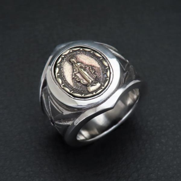 【モチーフ】 聖母マリア、マリア、クロス、十字架 ◆モチーフ意味 聖母マリアのメダイは持つ人に奇跡の恵みがもたらされると言われています。 十字架といえばイエス・キリスト。 イエス・キリストは、人類を罪から救うため、十字架に磔刑に処されたといわれています。 そのため、十字架はキリスト教における救いのシンボルであり、特別な意味を持つ尊重されるべきしるしでもあるのです。 このような背景があるため、クロスは愛、救い、永遠、解放、生命力、復活など、多様な意味を持ちます。 また、クロスには守護の要素が強く、魔除けの効果があり、天からの加護や災いを跳ね返してくれる力が高まるともいわれています。 ◆商品名 聖母マリアリング(RNG-62) ◆素材 シルバー925 スターリングシルバー × 真鍮 ブラス ◆リング幅 最大23mm、最小9mm ◆ストーン 直径2.0mm 下記の中からお好みの天然石・誕生石をお付け致します。 ・ガーネット ・ロードライトガーネット ・アメジスト ・アクアマリン ・ブラックダイヤモンド ・エメラルド ・ブルームーンストーン ・ルビー ・ペリドット ・サファイア ・アイオライト ・ピンクトルマリン ・シトリン ・ブルートパーズ ・タンザナイト ・オニキス ・ラピスラズリ ・ターコイズ ◆リングサイズ 15号~30号 ◆付属品 ジュエリーBOX、ショップ袋、品質保証書 *プレゼント梱包出来ます ◆実店舗 Grand Galleria(グランドガレリア) JR帯広駅より徒歩5分の場所にある2012年オープンのフラッグシップショップ。 ジュエリー工房を併設し、常駐する職人自らと打ち合わせも可能なため、修理や加工、お客様のご希望に沿ったジュエリーもお作りすることが可能です。 ◆オススメ使用シーン ・様々な贈り物に プレゼント 贈り物 誕生日 誕プレ 誕生日プレゼント バースデー バースデイ 御祝 御祝い お祝い 母の日 父の日 クリスマス クリスマスプレゼント Xmas 春夏秋冬 成人 成人式 卒業 卒業式 進学 就職 入学 金婚式 銀婚式 出産 結婚 開店 開業 定年退職 退職 移動 転勤 バレンタイン バレンタインデー バレンタインデイホワイトデー ホワイトデイ ごほうび ご褒美 御褒美 ・想いを込めて ありがとう 感謝 ごめんなさい 許して ごめんね よろしく おめでとう おめでとうございます 仲直り
