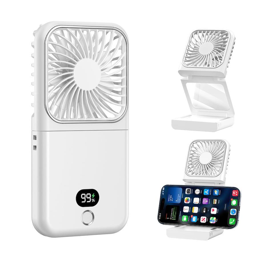 ViSSKO ハンディファン 手鏡 首掛け扇風機 ハンディファン-首掛け 5段階風量 2025革新・液晶表示&15時間連続可能 携帯扇風機 Type-C 6in1-ネックファン/卓上/手鏡/スマホスタンド/ほか 小型軽量 熱中症対策 暑さ対策 工事/アウトドア/屋外作業/旅行用 -ホワイト