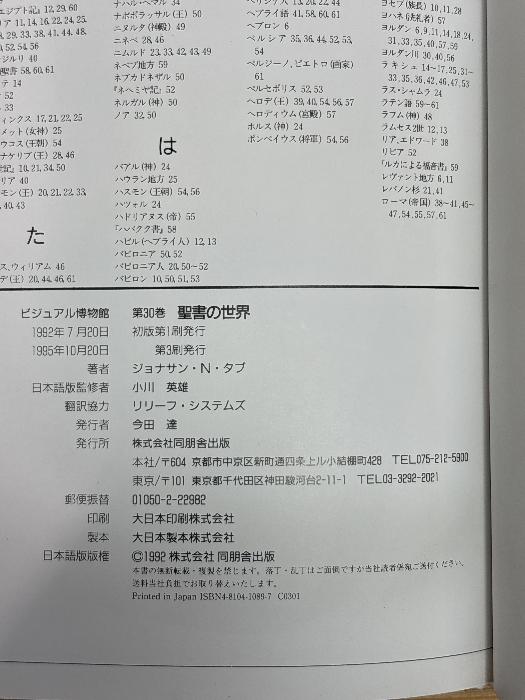 b03-260122004001015-000ビジュアル博物館 第30巻 角川書店(同朋舎) ジョナサン・N. タブ聖書の世界-聖書の世界の地理と歴史にまつわる物語 その聖なる地の物語を9784810410891<%% SHIPPING %%>表紙上端部に、よごれがあります。本は経年感、使用感ございますが読むことに支障はございません。※注意事項※■商品・状態はコンディションガイドラインに基づき、判断・出品されております。■付録等の付属品がある商品の場合、記載されていない物は『付属なし』とご理解下さい。