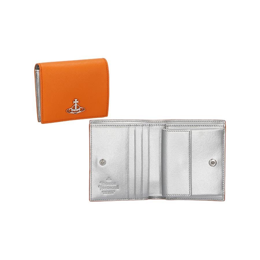 商品名:ヴィヴィアンウエストウッド Vivienne Westwood 財布 二つ折り財布 折りたたみ財布 小銭入れ付き 51010024 F401 SAFFIANO サフィアーノ レディース オレンジ系