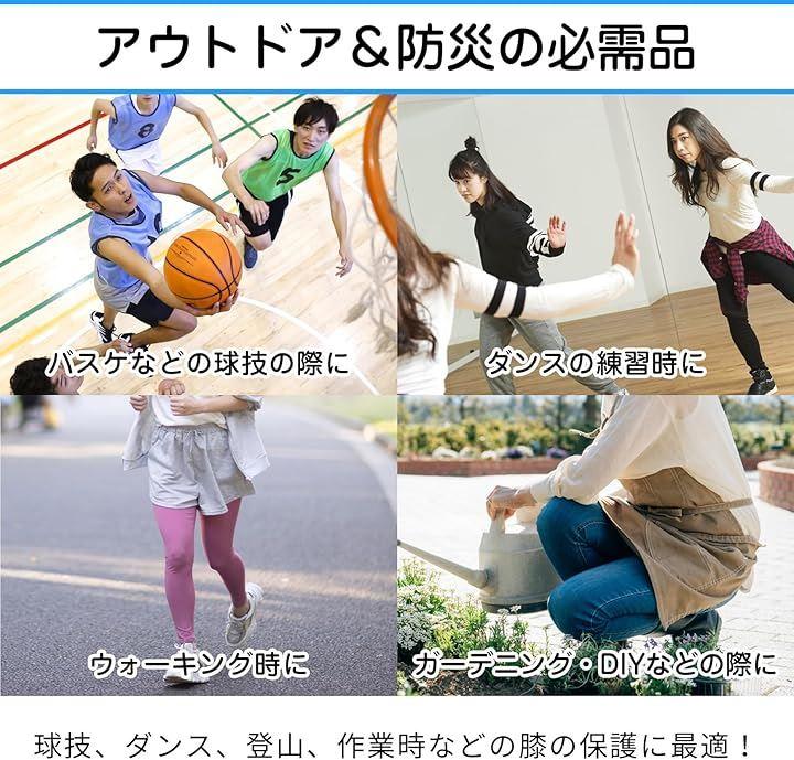 「こんなシーンで大活躍」バレーボール・バスケットボール・サッカー・テニス・フットサルなどの球技に/ダンス・スケート・スノーボード・サイクリング・登山などのアクティビティに/ガーデニング・DIY・お仕事での膝の保護に