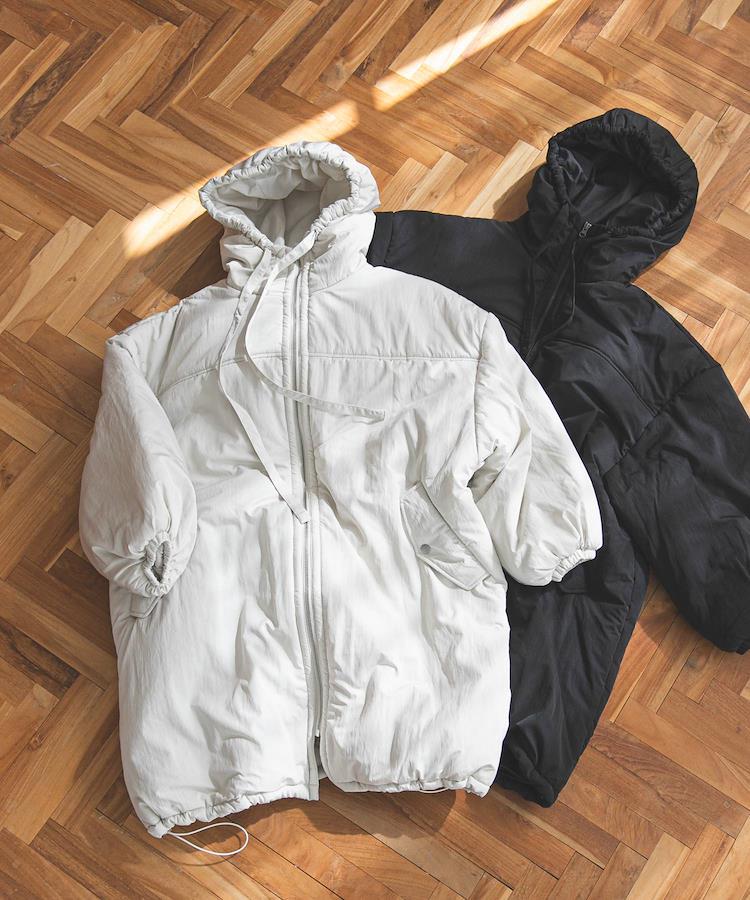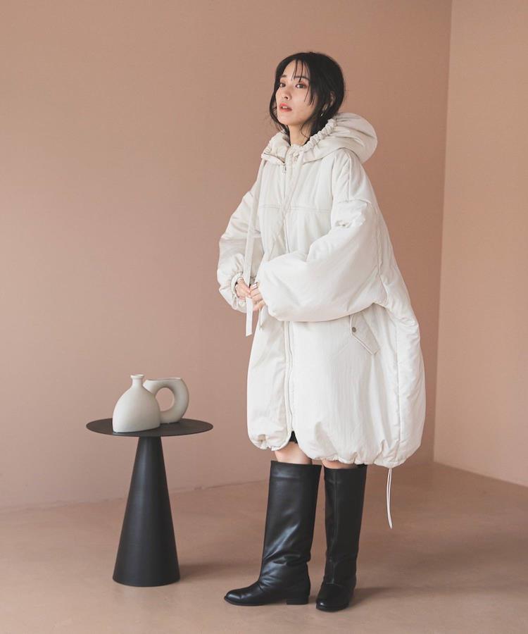 たっぷりとした丸みのあるシルエットが魅力的な中綿を使用したモンスターコート。