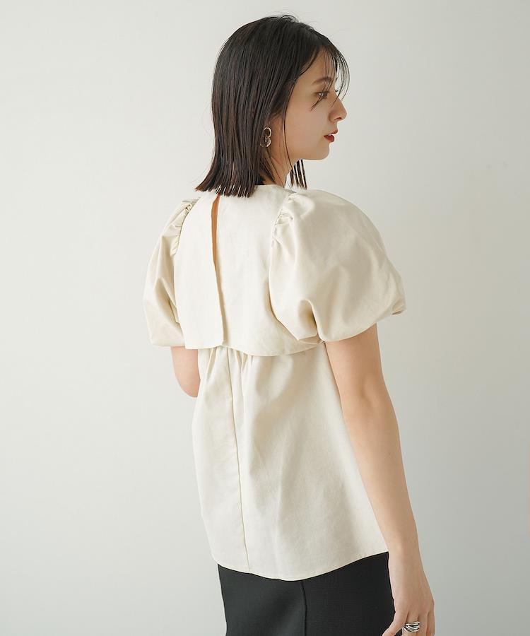バルーンテクニックで表現したボリュームスリーブが特徴のフレアトップス。