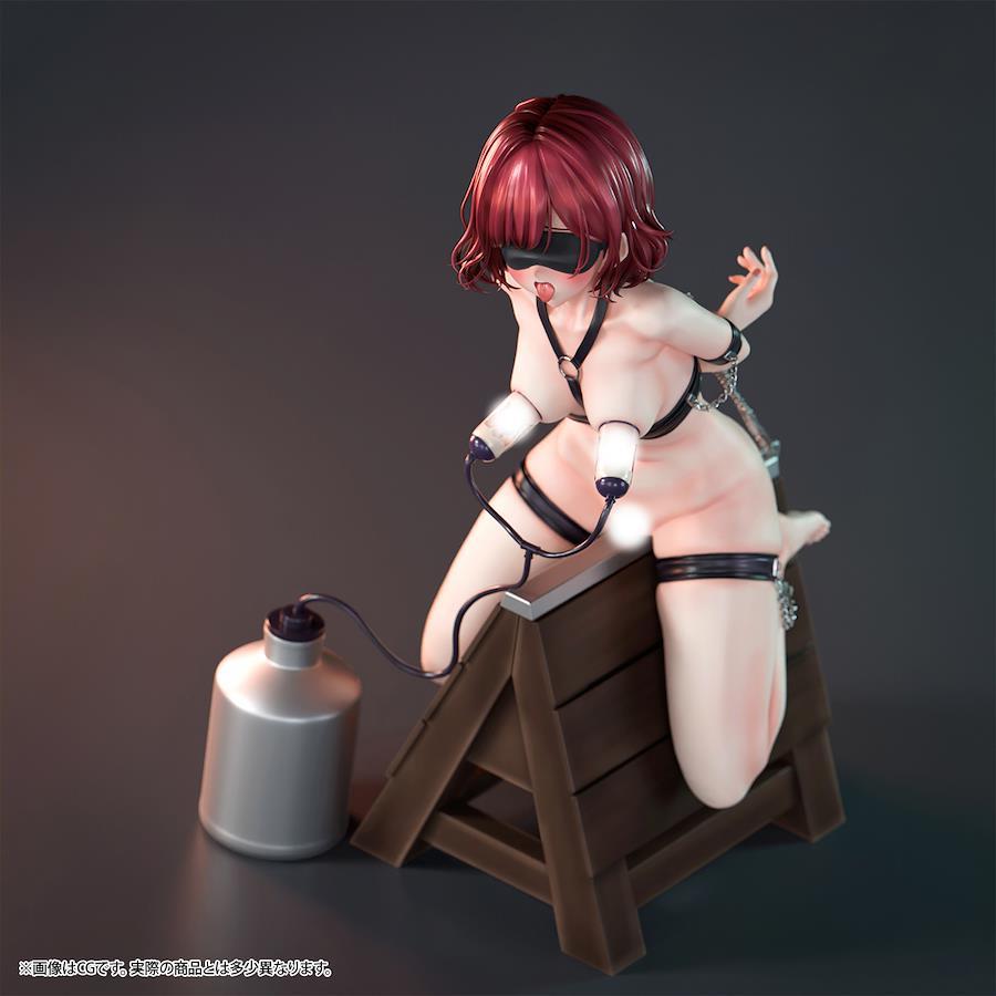 肉感少女シリーズより、三角木馬でお仕置き中「花岡さん」が1/6スケールフィギュアで再販決定です!目隠しをしたまま搾乳器具を装着し、三角木馬に拘束された姿を立体化しました。ベルトとチェーンによる拘束表現や、快楽から逃れようと身をひねる華奢な肢体まで、リアルに表現しました。吸引によって勢いよく噴き出す母乳、舌を垂らして快楽に悶える表情も見どころです。理不尽なお仕置きから逃れられない彼女の姿を、ぜひお手元でご堪能ください。※アイマスクは外せません。