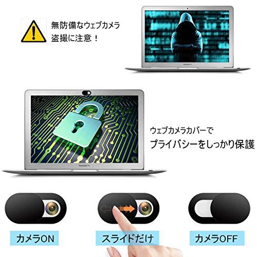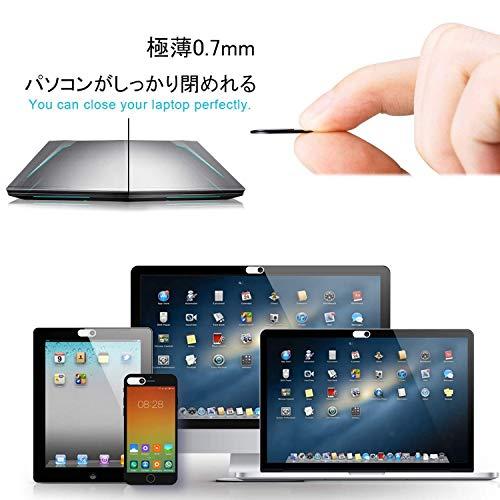 【プライバシー保護】今の時代どこの誰かにいつのまにか見られている可能性は十分にあります。ノートPC、スマホなどのWEBカメラ/インカメラを塞いで、ハッキングによる盗撮を防止して安心です。【超薄型】0.7mmで薄いので邪魔にならない。ノートパソコンがしっかり閉めれる。色もデザインも地味で目立たないです。両面テープで貼りつけるだけです。強力な3Mテープを使用、粘着力が強く剥がれ落ちにくいです。【使いやすい】スライドするだけでカメラON/OFFできて楽です。スライドは引っかかる感じもなくスムーズに動くし、勝手に動かないです。滑り止め模様付、押しやすい。【適応機種】ノートパソコン、タブレット、デスクトップ、コンピュータ、スマートフォン(MacBook Pro / Air、iMac、Surface Pro、iPhone、iPad、Samsung Galaxy等 )殆どの機種とTesla Model 3の車載カメラに適用。※飛び出たカメラの場合は対応不可。【内容物】ウェブカメラカバー*4個セット、収納ケース付。色:黒、素材:ABSプラスチック、サイズ:28*11*0.7mm