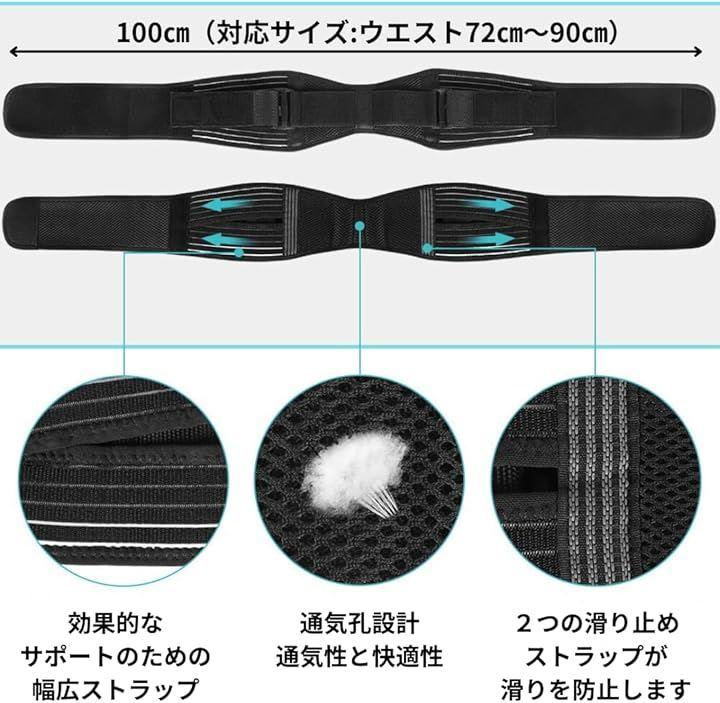 「腰痛やぎっくり腰に対する総合的なサポート」 この腰サポーターは、理学療法士推薦のデザインで、腰椎をしっかり支え、日常生活の動きを妨げることなく安心感を提供します