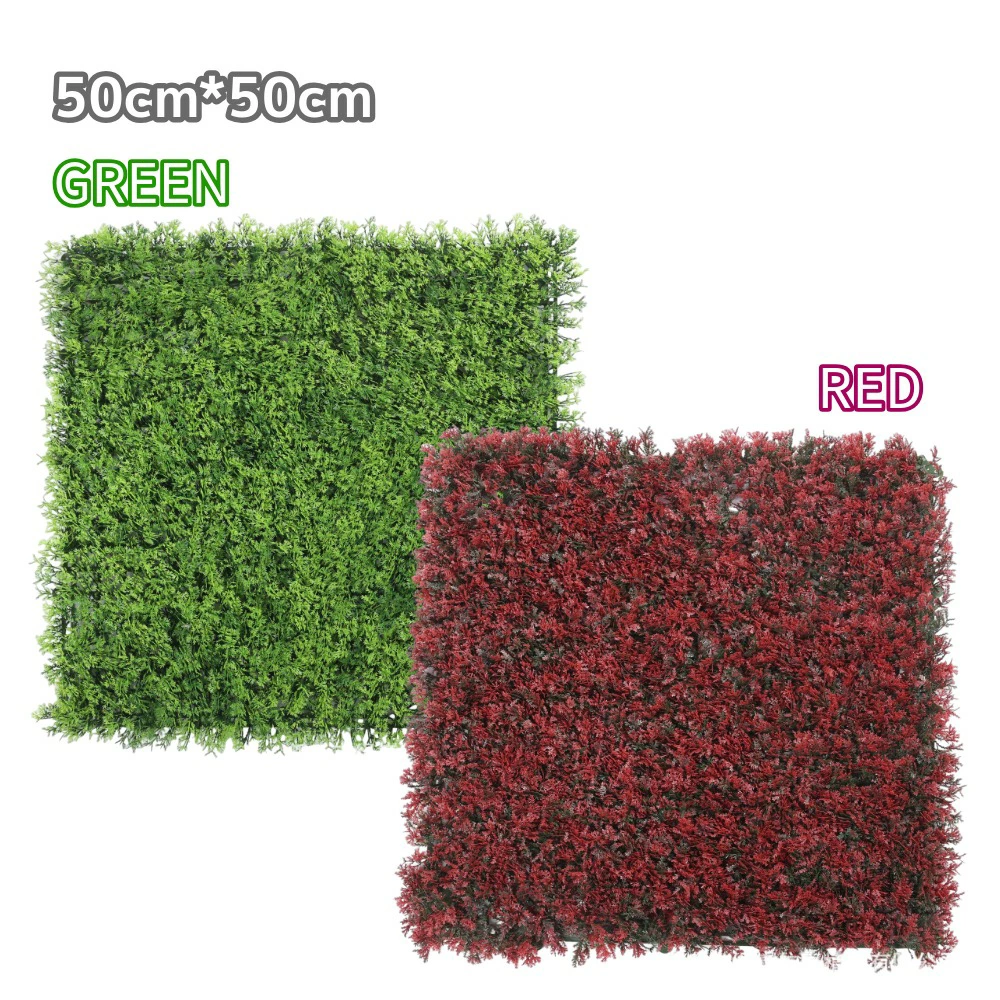 Wall-Mounted Artificial Turf Panel, 50x50cm, Faux Greenery, Square, Green, Red, Indoor/Outdoor Use, Garden, Balcony, Privacy Screen, Wall Greening, DIY, Interior Decoration