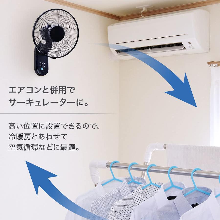 3営業日以内に発送≪新品未開封品≫:壁に設置する壁掛け扇風機。置き場所を選ばず、リビングやキッチン、脱衣所など狭い空間でも活躍してくれます。高い位置から風が送られるため、置き型の扇風機よりも効率的に空気を循環させることができます。すべての操作が手元でできるフルリモコンタイプです。サイズ(約):35×28×48cm、電源コード(約):1.6m、重量(約):2.62kg電圧:100V、周波数:50/60Hz、消費電力:40W/45W、首振角度:80°