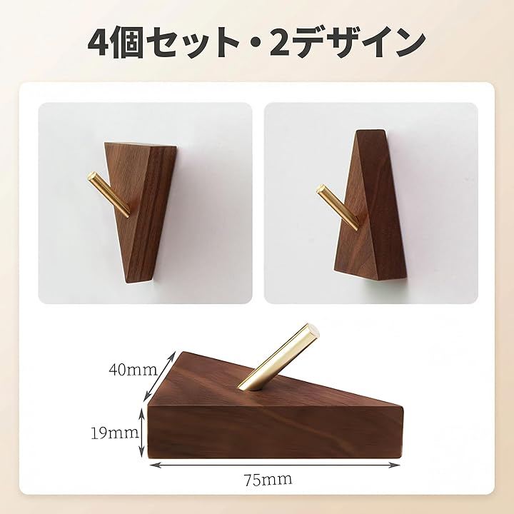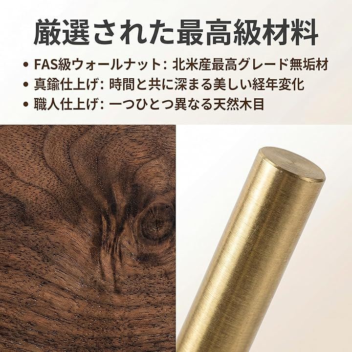 「北米FAS級ウォールナットx真鍮」 高グレードの無垢材と真鍮を組み合わせた高級壁掛けフック。