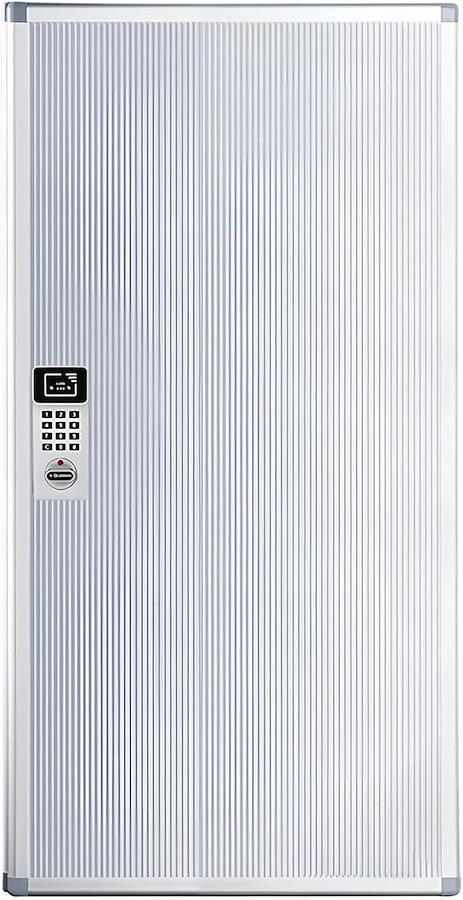 Wall-mounted key box with combination/sensor keypad, battery-operated, and emergency release key. Space-saving design for offices and businesses. Anti-theft protection.