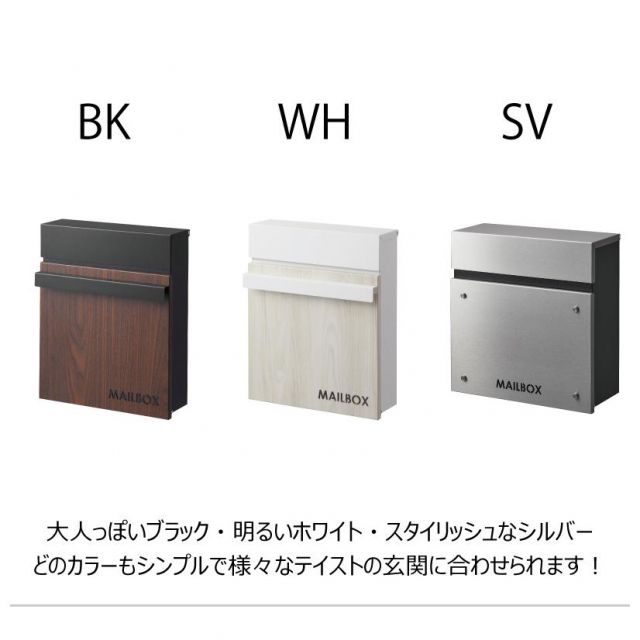 ポスト壁掛け壁付け壁面ウォールポストメールボックスおしゃれスリム薄型薄い薄め鍵付きスチール木目調ブラウン黒ブラック白ホワイト