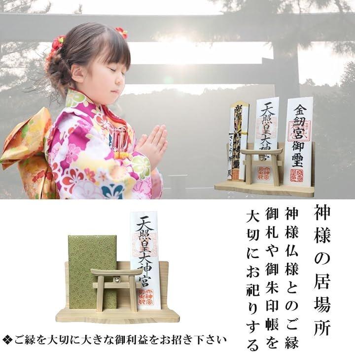 「神棚の用途」お札立て、御朱印帳飾り、御神札飾り、御守り飾り、木札差し、御守り入れ、破魔矢飾り 「 開運 招福 初宮詣 七五三詣 合格祈願 厄祓い 金運 必勝祈願 新車祓 商売繁盛 結婚式 その他、諸祈願など 」