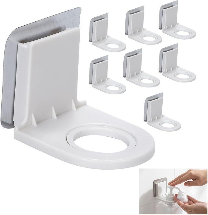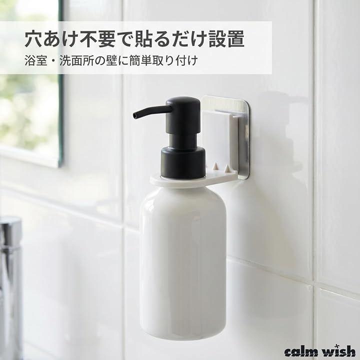 「強力固定&省スペース設計」 強力な粘着パッドでしっかり固定でき、シャンプーやソープボトルを安定して吊り下げ可能。