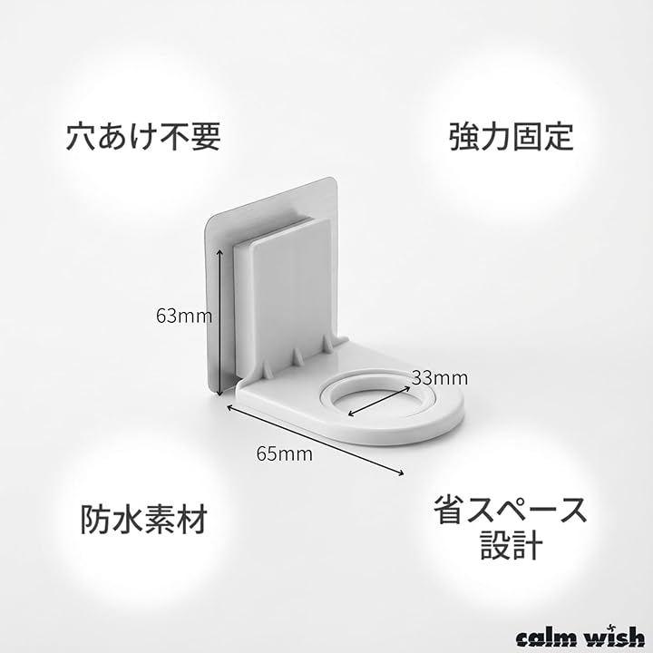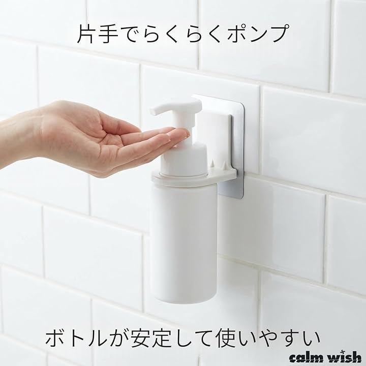 「穴あけ不要の粘着式デザイン」 壁に穴をあけずに取り付けできる強力粘着タイプのソープディスペンサー壁掛けホルダーです。