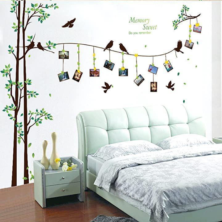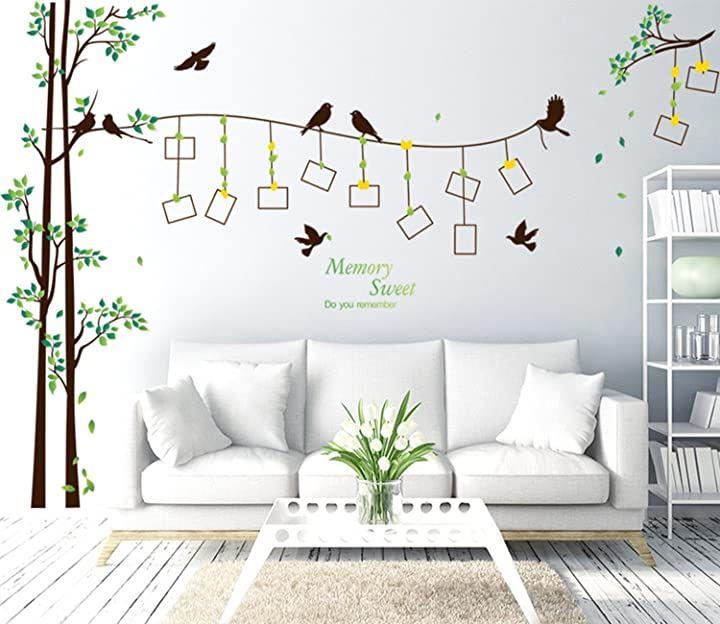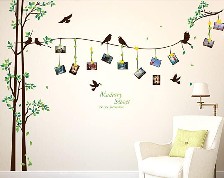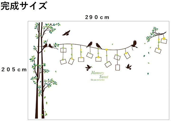 (ロキリフ)ウォールステッカーフォトフレーム緑&鳥2枚セット(仕上290x205cm)(ファミリー自然イベントシールステッカー壁紙)