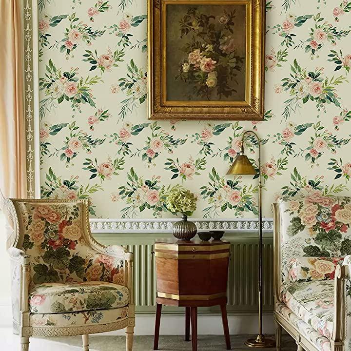 花柄の壁紙は明るい雰囲気を演出し、洋室でも和室でも違和感なくなります。