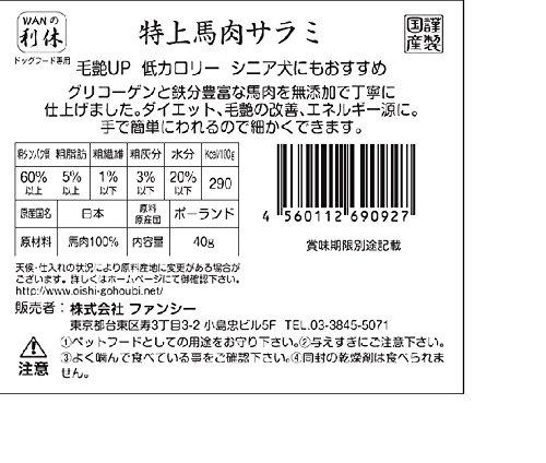 ヨーロッパ産の放牧馬肉を完全無添加でサラミに仕上げました。低カロリー、低アレルギー、毛ツヤサポート