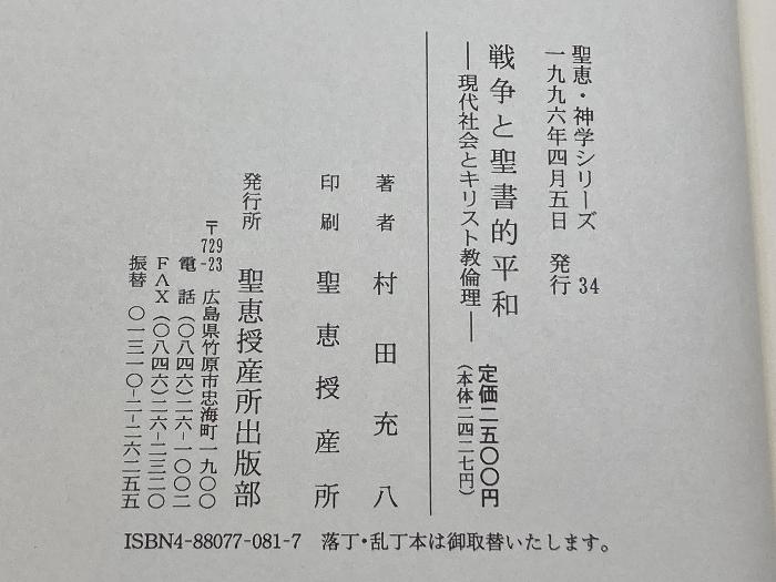 商品名:戦争と聖書的平和: 現代社会とキリスト教倫理 (聖恵・神学シリ-ズ 34) 聖恵授産所出版部 村田充八