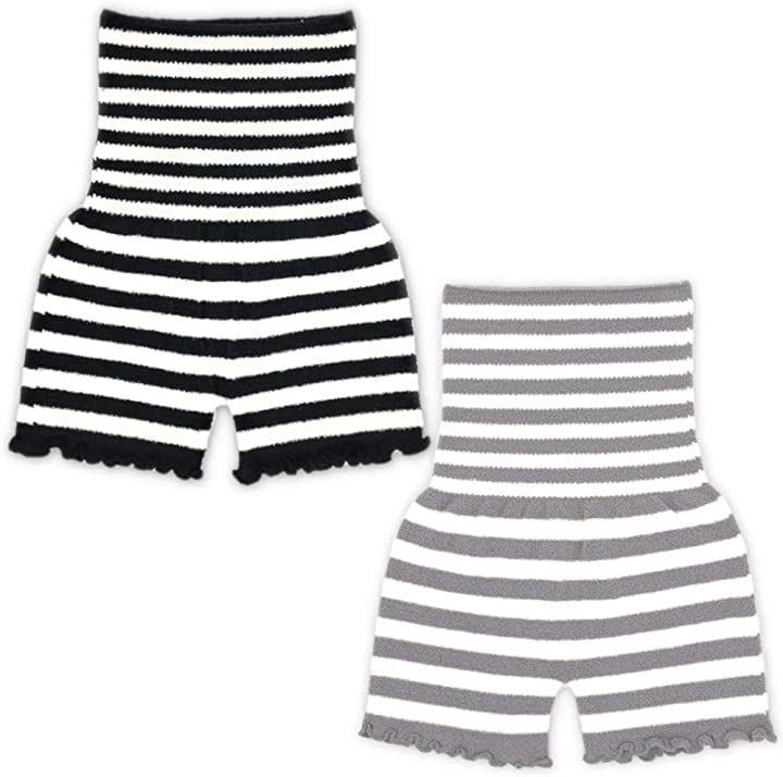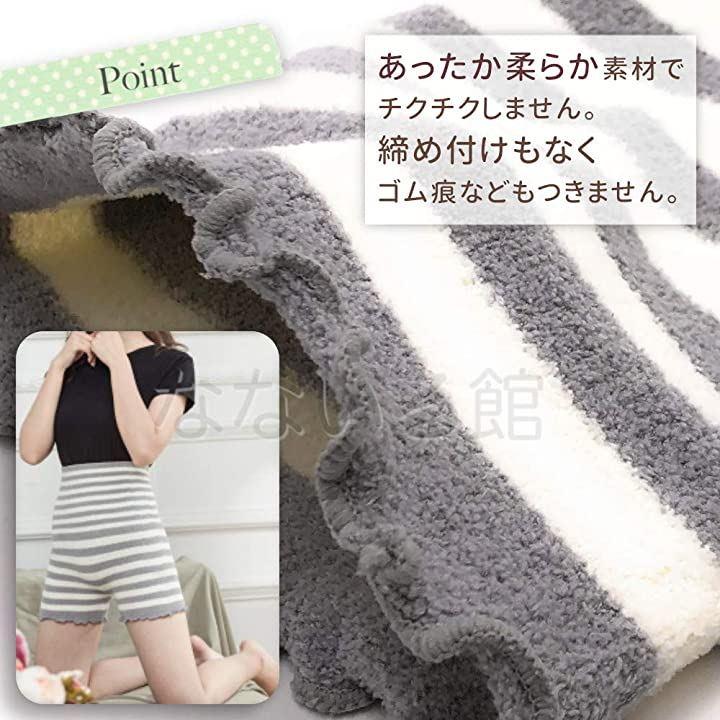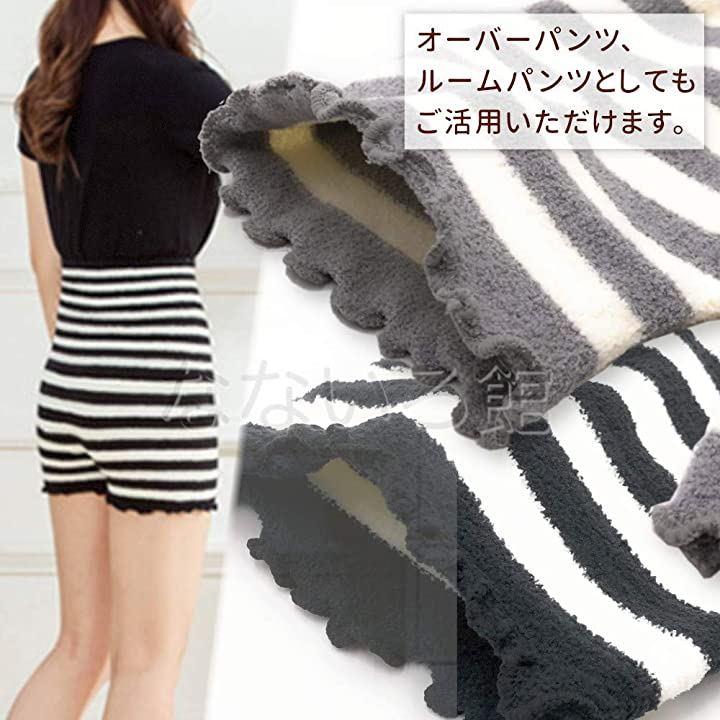 「(なないろ館)あったかボーダー柄もこもこパンツふわふわレディース毛糸のパンツ2枚セット腹巻き付き冷え対策に黒色灰色」