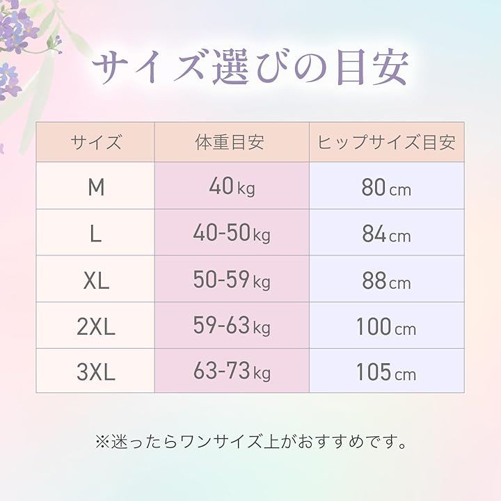 「いざという時の「カラフルなおまもり」」Mサイズからゆったり3XLサイズまで、どなたにも合う5サイズをご用意しました。