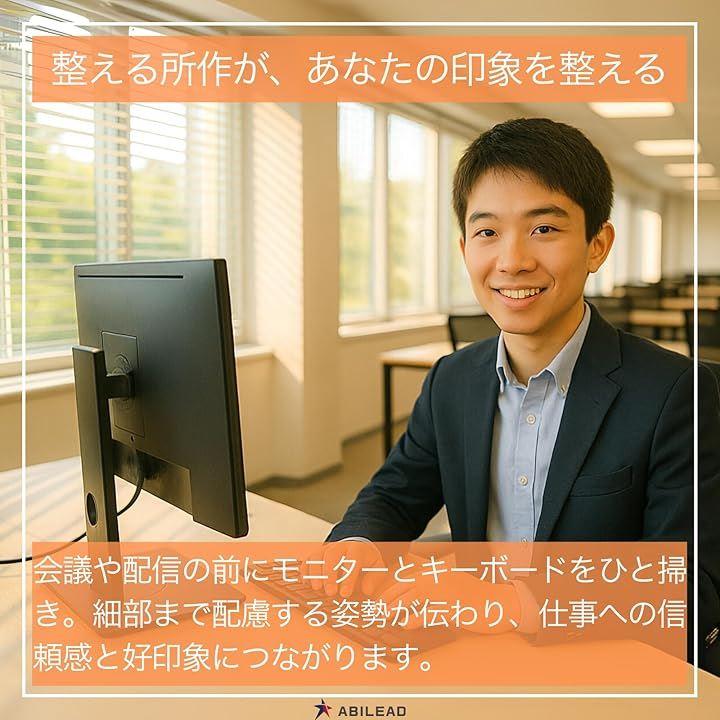 ABILEADのキーボードブラシは、机まわりの微細なほこりを素早く払い、作業前の気分と視界を整えるための清掃ツールです。