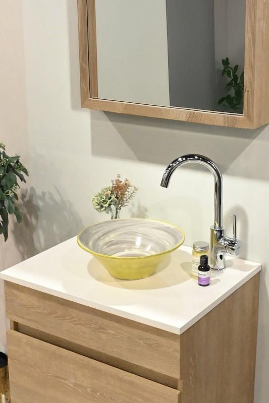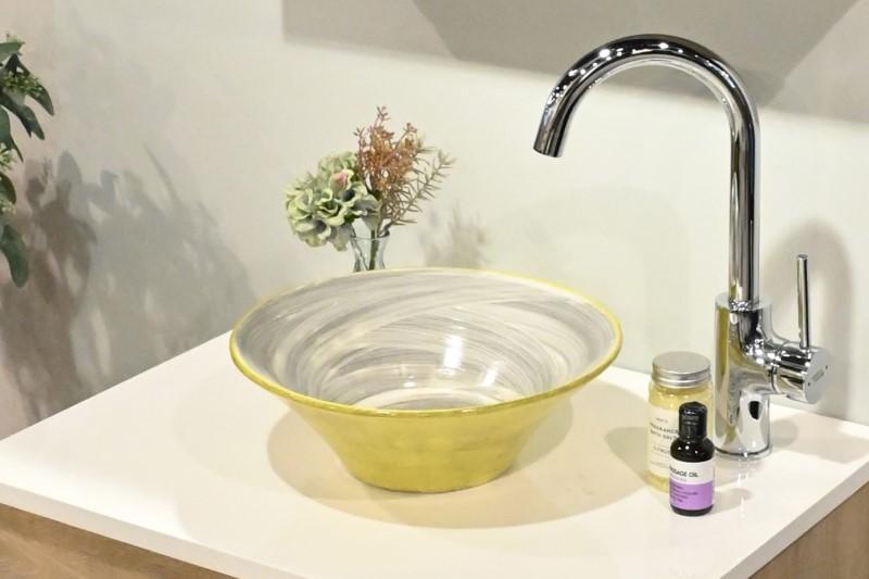 【商品型番 ET-1】サイズ:W305 x D305 x H100素材:陶器色:黄色側面:無地