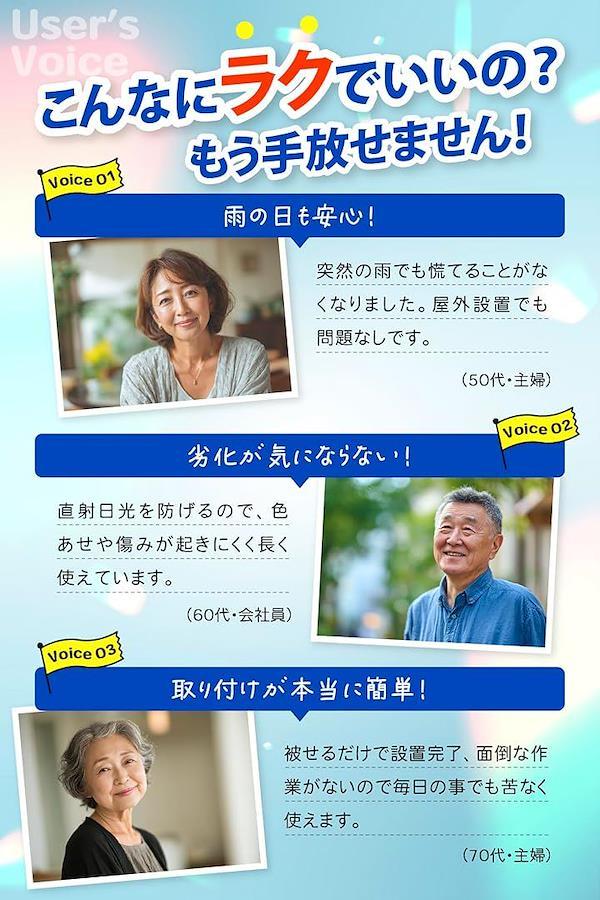 屋外設置時に問題となりやすい日差し・温度上昇・色あせ対策を1枚でカバーし、長期間安心して使用できる設計です。