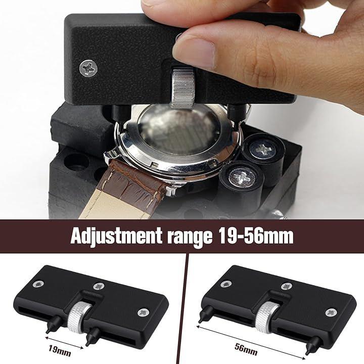 ウォッチオープナー: 調整可能な二本爪のウォッチオープナーは、サイズを調整することができ、複数の溝で時計の裏蓋を回転させるために使用され、さらに、ドライバーは時計のカバーを固定し、内部の動きを削除するために使用され、小さなハンマーヘッドは、インストールを支援するために使用されます