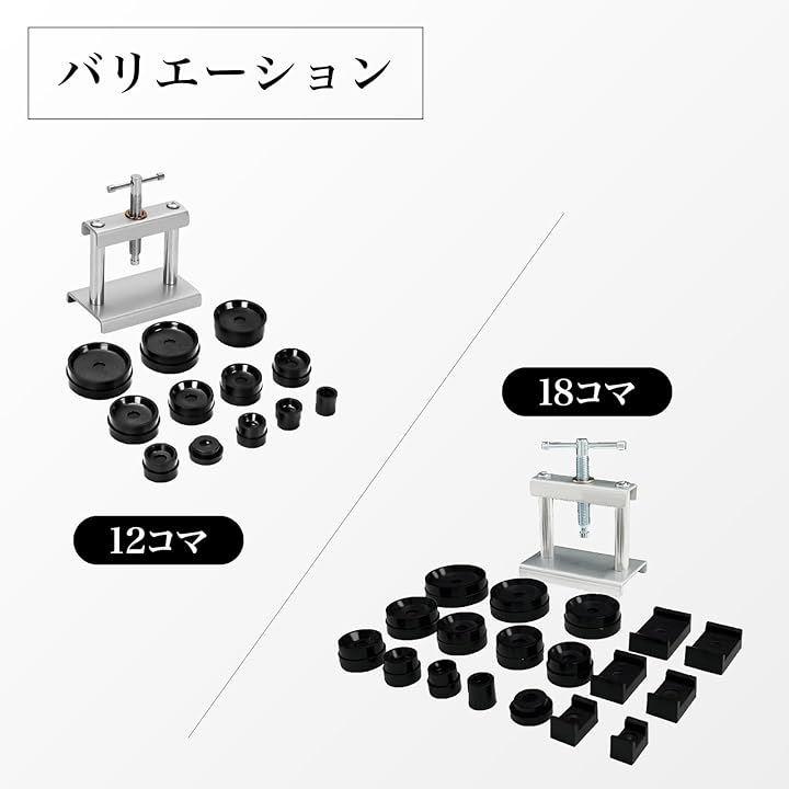裏蓋閉めるためのコマが丸型12コマ、四角型6コマ、合計18コマ付属しており、時計のフェイスの形に応じて選択して頂くことが可能です。