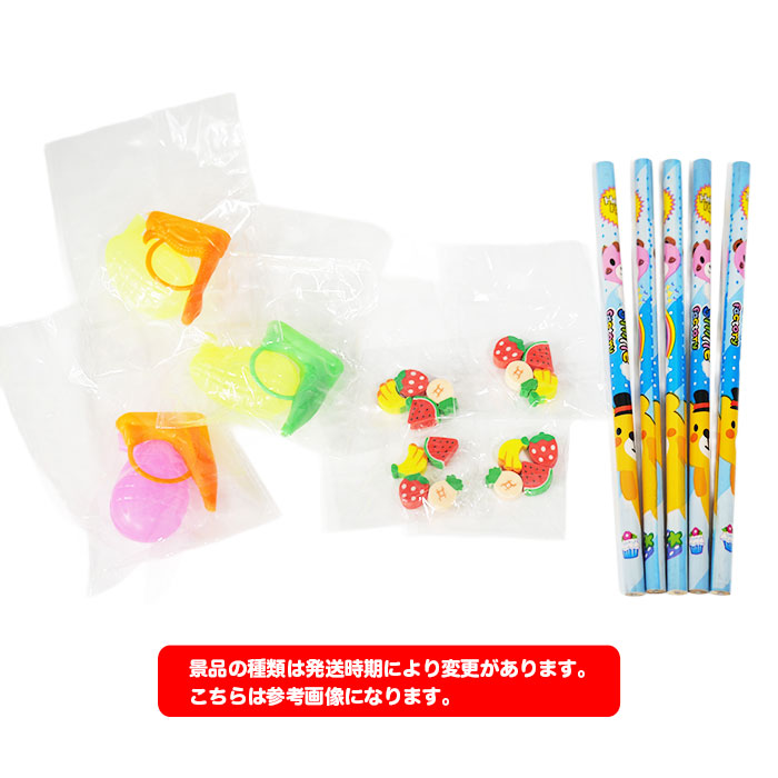 はずれの景品は、鉛筆や消しゴム、ミニサイズの水鉄砲です。