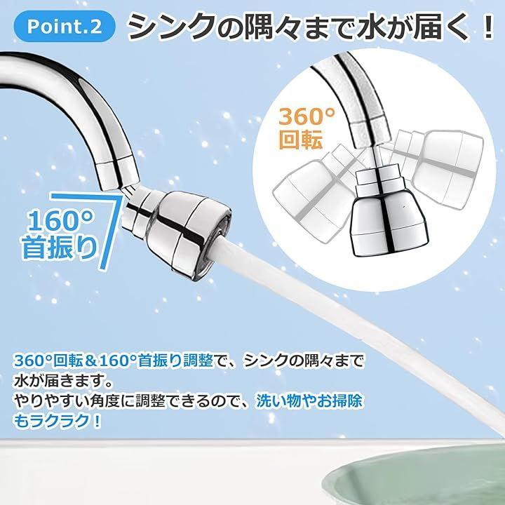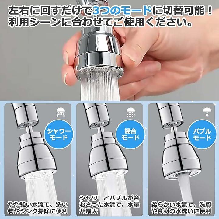 ・️シャワーモード やや強い水流で、洗い物やシンク掃除に便利 ・️混合モード シャワーとバブルが合わさった水流で、水量が最大 ・️バブルモード 柔らかい水流で、洗顔や食材の水洗いに便利