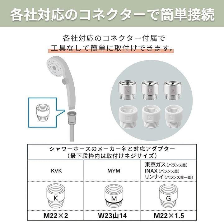 ほとんどのご家庭のシャワーに工具なしで簡単に取り付けできるので、届いたその日からご使用いただけます。