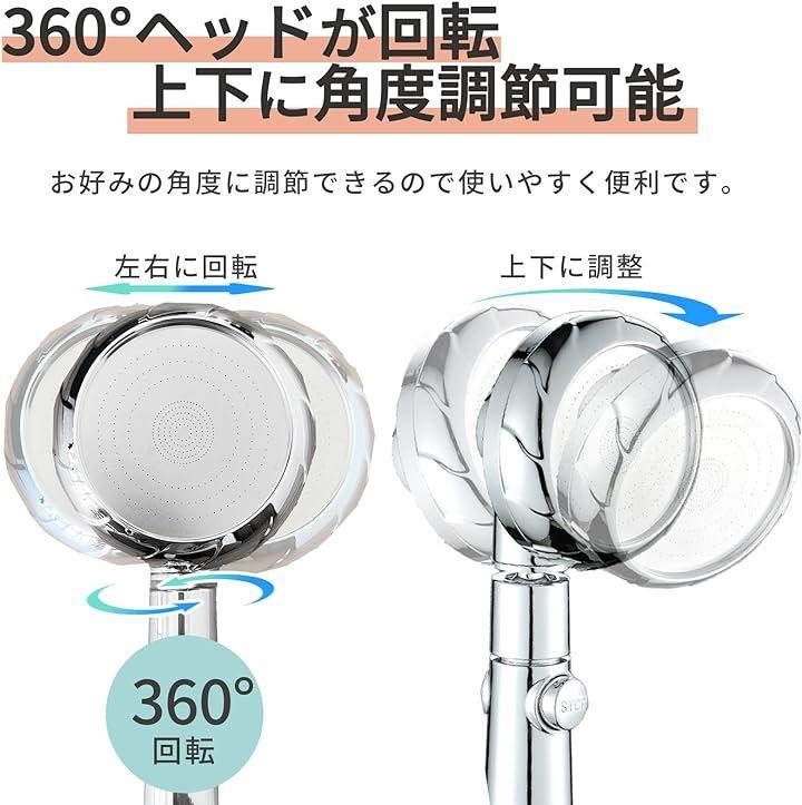 シャワーヘッドは360度にヘッドが回転、上下に角度調整可能もできるため、ストレスなくシャワーをお使い頂けます。