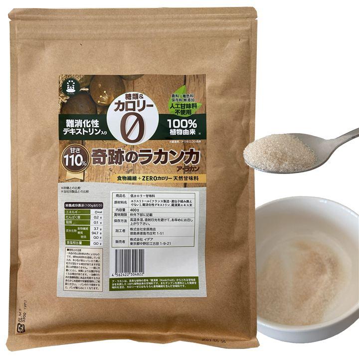 水溶性食物繊維 難消化性デキストリン入 奇跡のラカンカ 400g 粉末 エリスリトール&羅漢果 置換ダイエット用 カロリーゼロ 甘味料ア・ラカン (1袋)。