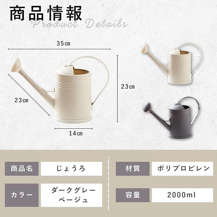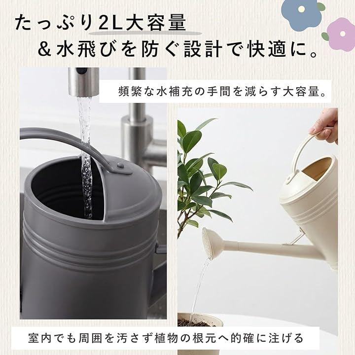 2Lの大容量で、一度の水補充でたっぷり水やりができます。