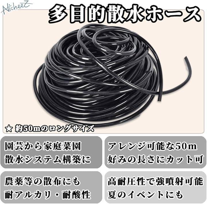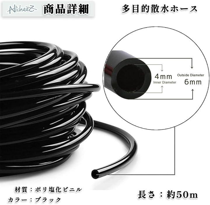 「商品内容」 多目的散水ホース 材質:ポリ塩化ビニル カラー:ブラック サイズ:外径/約6mm 内径/約4mm 長さ/約50m *ホースのみの販売です。