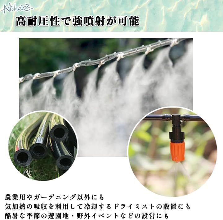 「高耐圧性で強噴射可能」農業用やガーデニング以外にも、気加熱の吸収を利用して冷却するドライミストの設置にもご利用いただけます。