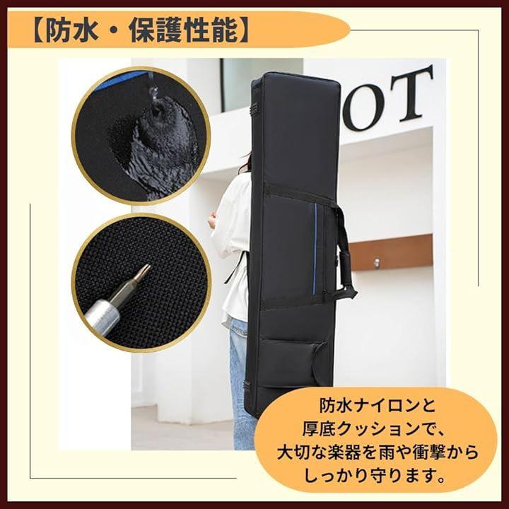 「防水・保護性能」防水ナイロンと厚底クッションで、大切な楽器を雨や衝撃からしっかり守ります。