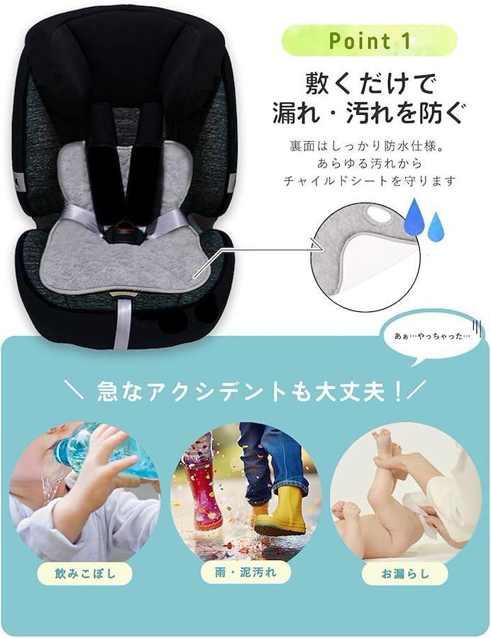 「座面をしっかりガード」チャイルドシートはお手入れが難しいので、できれば失敗したくない・・そんな方に。オムツ漏れ、おしっこ、ジュース、泥汚れ等のあらゆる汚れから座面を守ります。