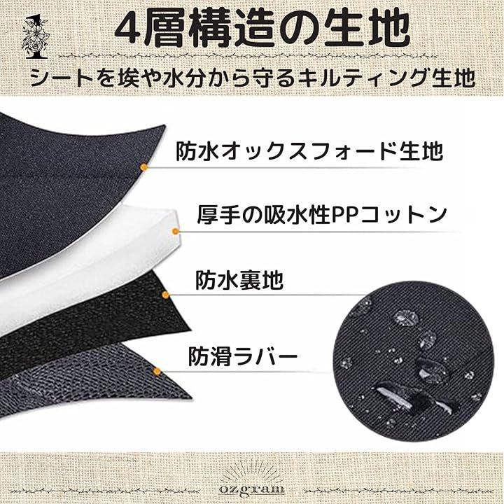 「4層構造の生地」シートを埃や水分から守る為の特殊構造のキルティング生地を採用