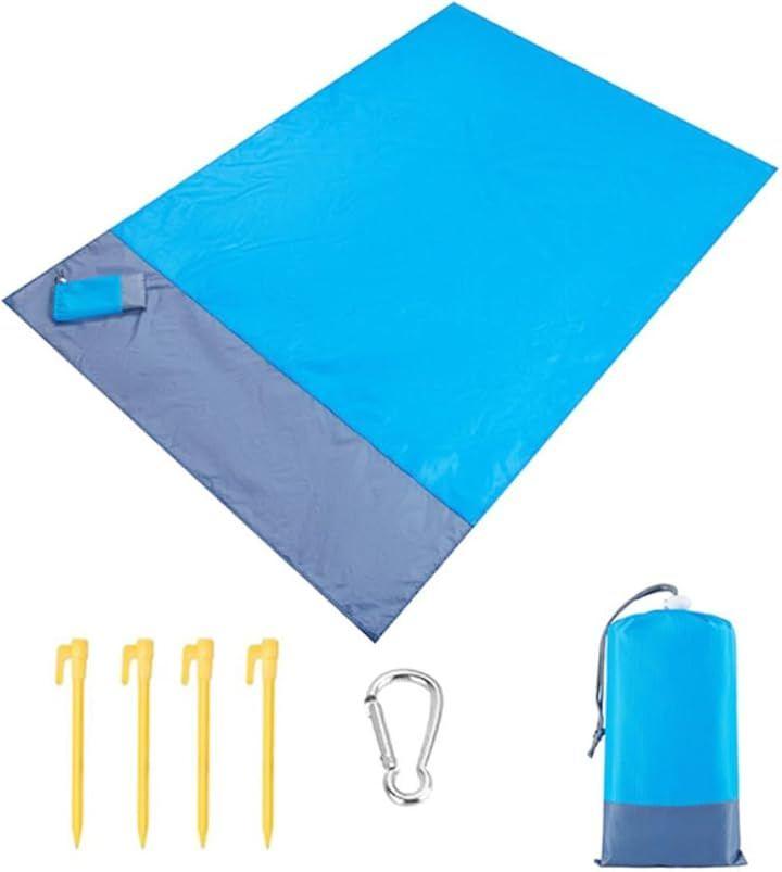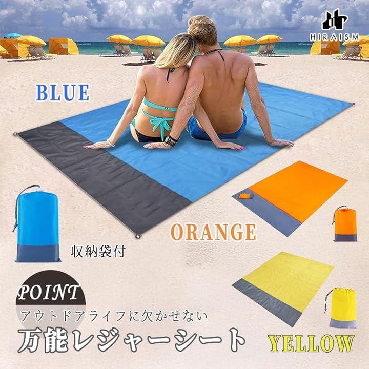 「商品内容」レジャーシート <サイズ>展開時:約200cmx140cm 収納時:約18cmx13cmx3cm <重量>約235g <素材>ポリエステル <カラー>ブルーorイエローorオレンジ <付属>ペグ4本、収納袋