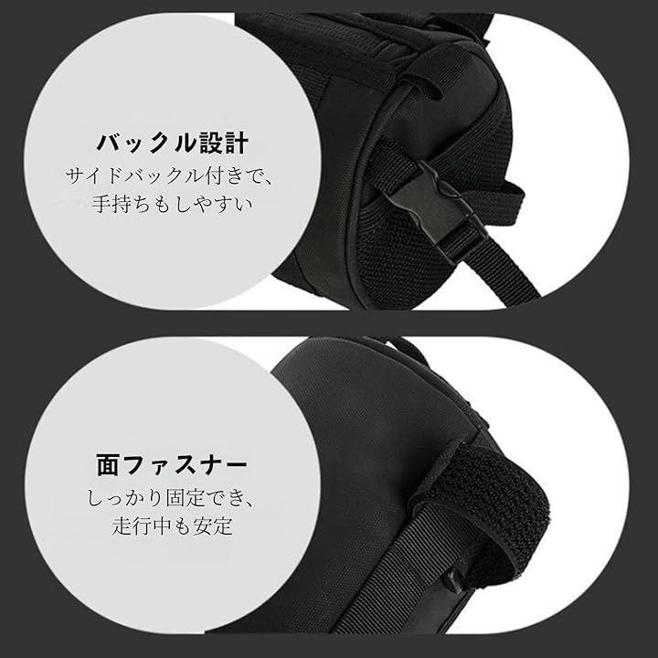 「取り付け簡単」2本の取り外し可能な面ファスナーを使用して、ハンドルバーに付けているパーツと干渉しないよう、取付箇所に自由度を持たせています。
