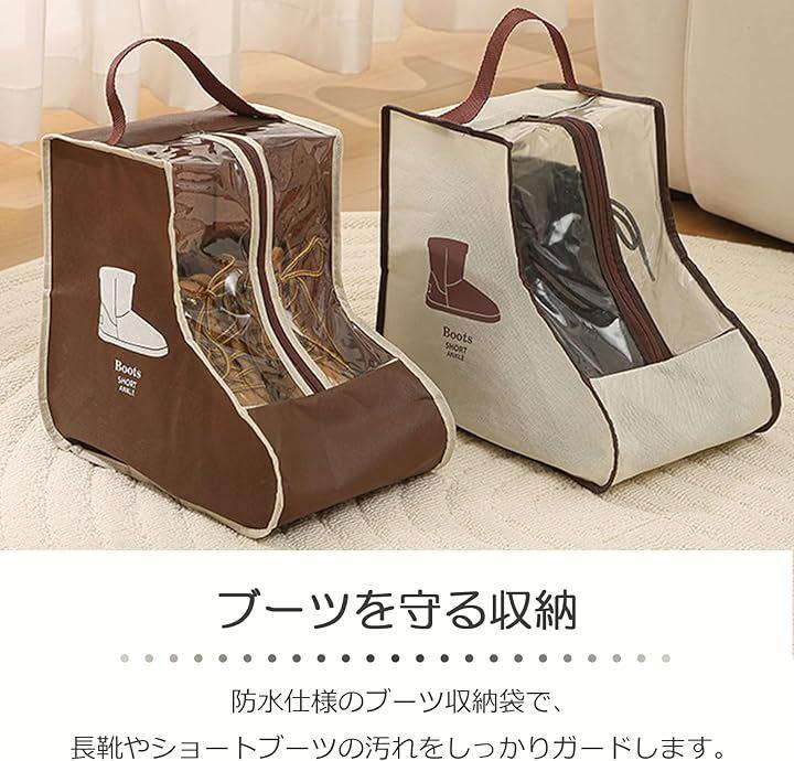 「ブーツを守る収納」 防水仕様のブーツ収納袋で、長靴やショートブーツの汚れをしっかりガードします。